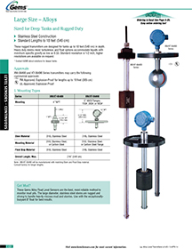 View the Gems Sensors & Controls Large Alloy Transmitters catalog page.