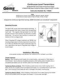 Gems continuous level transmitters are ideal for remote tank measurement for small to mid-size tanks. Various material combinations make them compatible with most liquid media and challenging fluids (including ultra-pure, dirty, coating, scaling and corrosive types). Tank level sensors are available in multiple sensing technologies, including float, radar, and ultrasonic liquid level sensing.