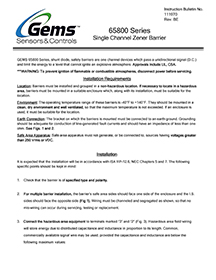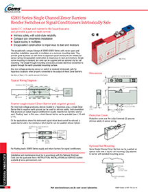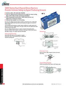 These passive, energy-limiting devices, provide intrinsically safe DC outputs for a variety of sensors such as level and flow switches level indicating transducers and transmitter and many others. The maximum energy possible at the switch terminals of Zener Barriers is far below the explosive point of the most volatile surrounding gas conditions. The type of non-voltage producing switch or sensor best suited for the application can be utilized, since the entire switching circuit is rendered intrinsically safe by the Zener Barrier. As the switching circuit is low voltage, there is no shock hazard to operating or maintenance personnel