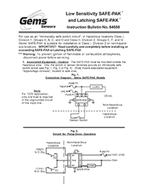 Download the Gems Sensors & Controls Low Sensitivity and Latching SAFE-PAK installation instructions bulletin.