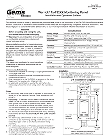 Download the Gems Sensors & Controls Warrick TA-732 Monitoring Panel installation instructions bulletin.
